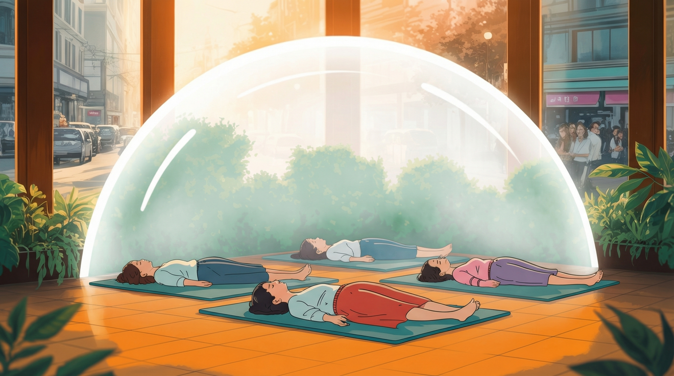 Quiet Decompress Sesh is a low-key, mostly silent group session designed to help mind and body settle after a full or demanding week. There’s no talking, no sharing, and no pressure to do anything “right.”